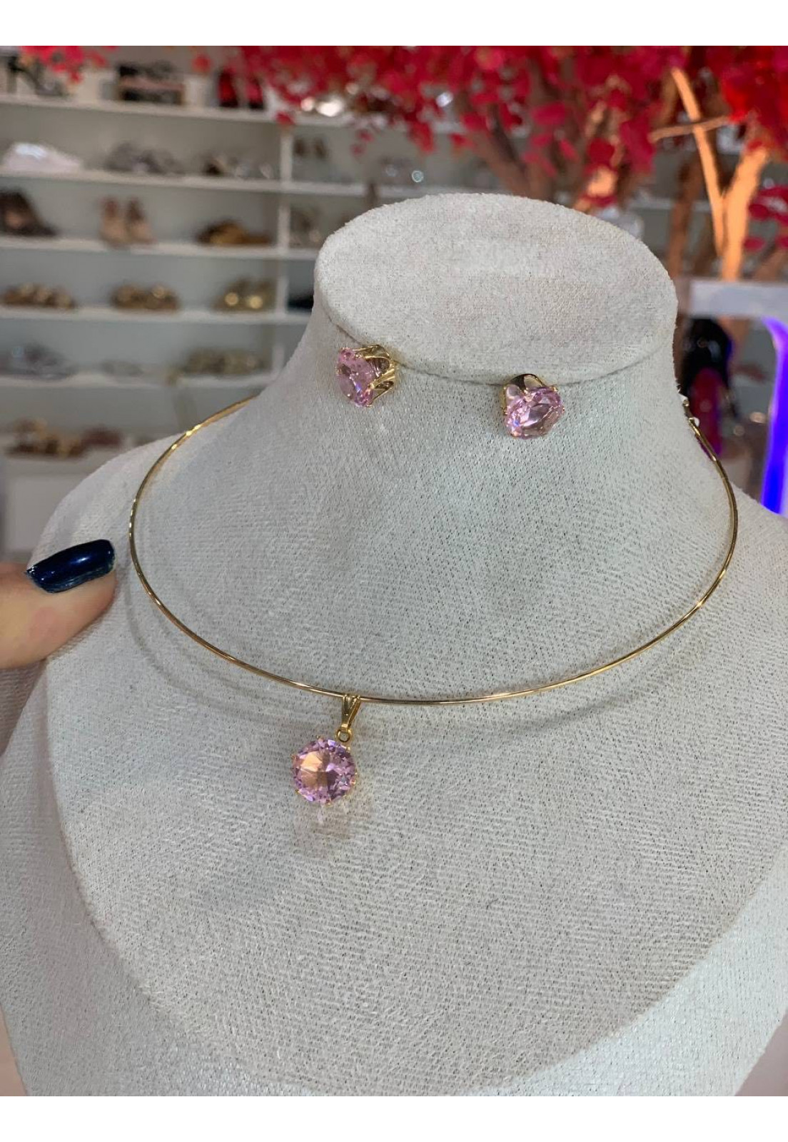 • Modelo: CONJUNTO COLAR E BRINCO PONTO DE LUZ ROSA