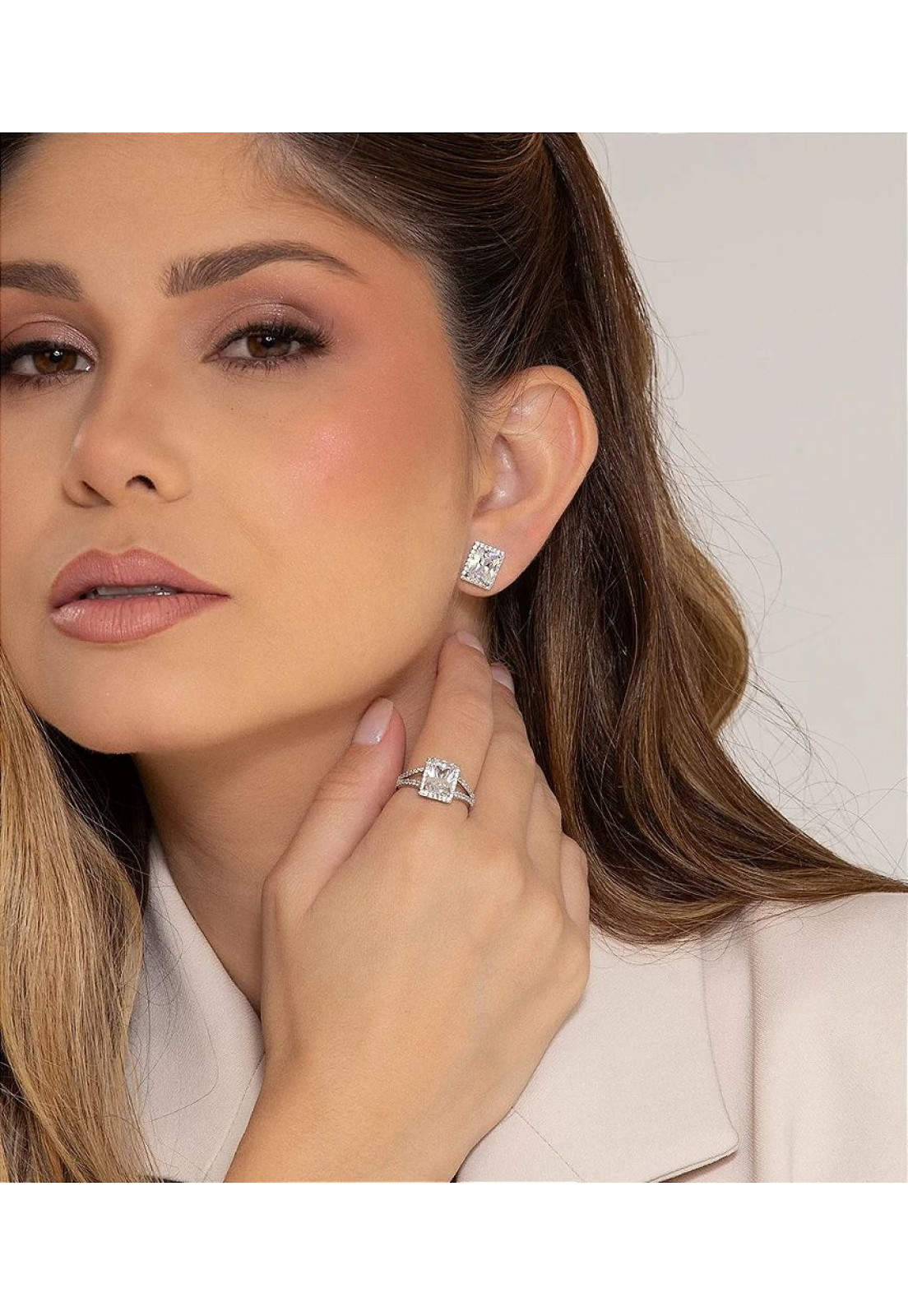 Conjunto de brinco e anel cravejado de zircônia cristal