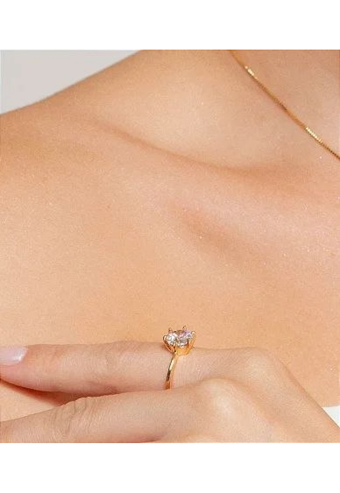 Anel dourado com Zirconia e cravejado de zircônia cristal banho em ouro 18k