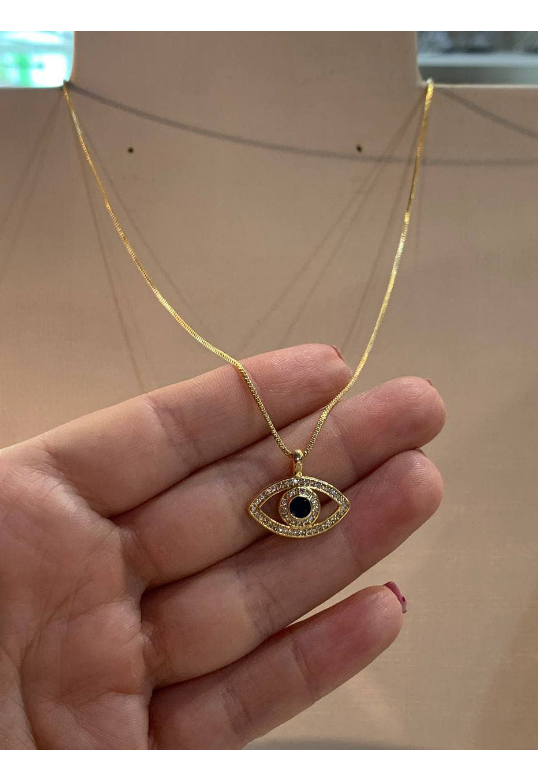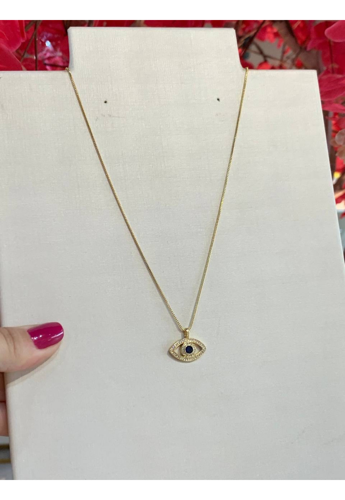 • Modelo: COLAR FOLHEADO DOURADO OLHO GREGO