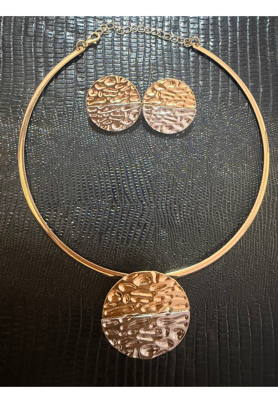 • Modelo: CONJUNTO COLAR E BRINCO MEIA BOLA PRATA MEIA DOURADA