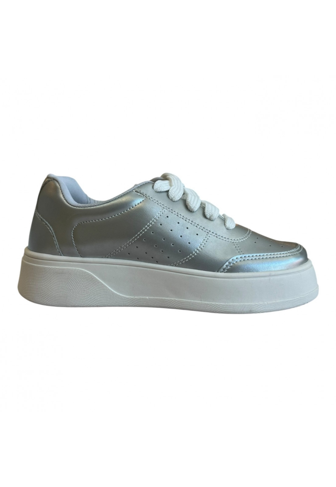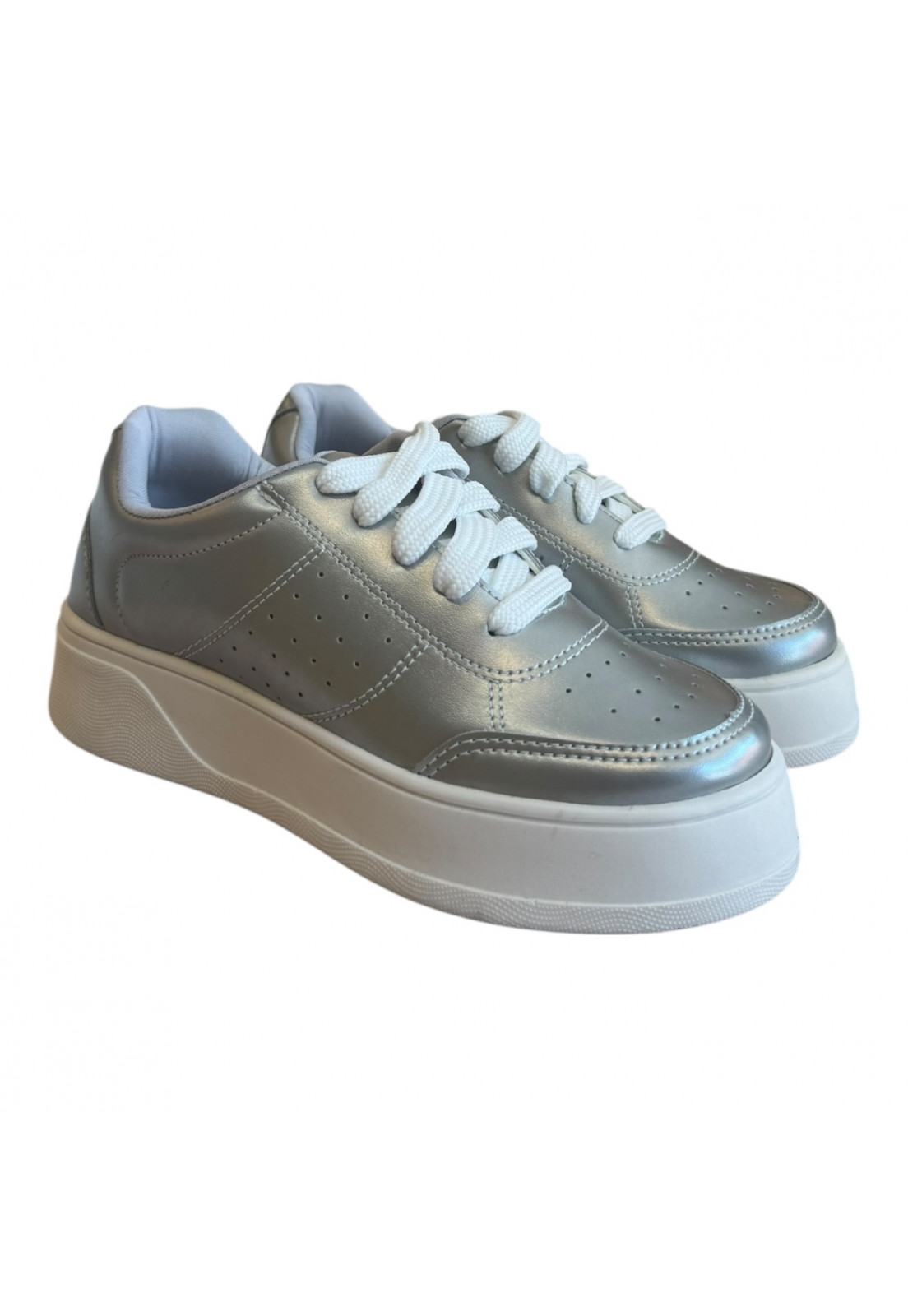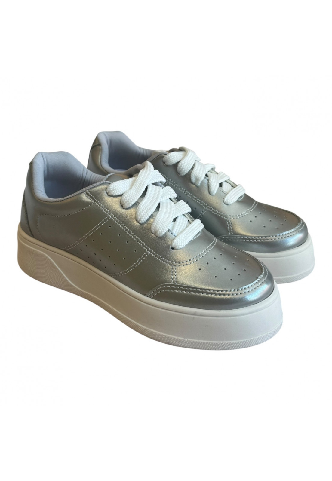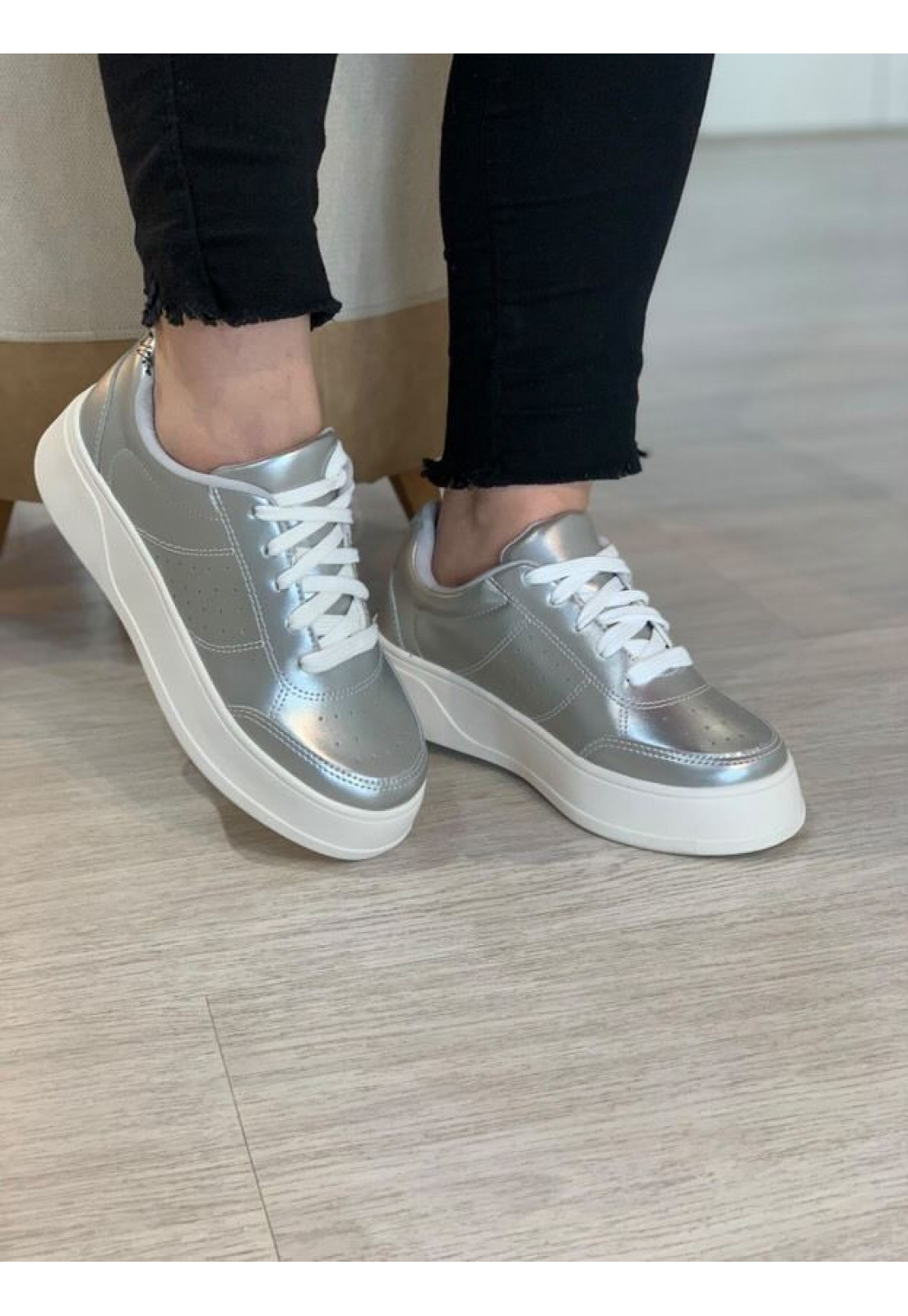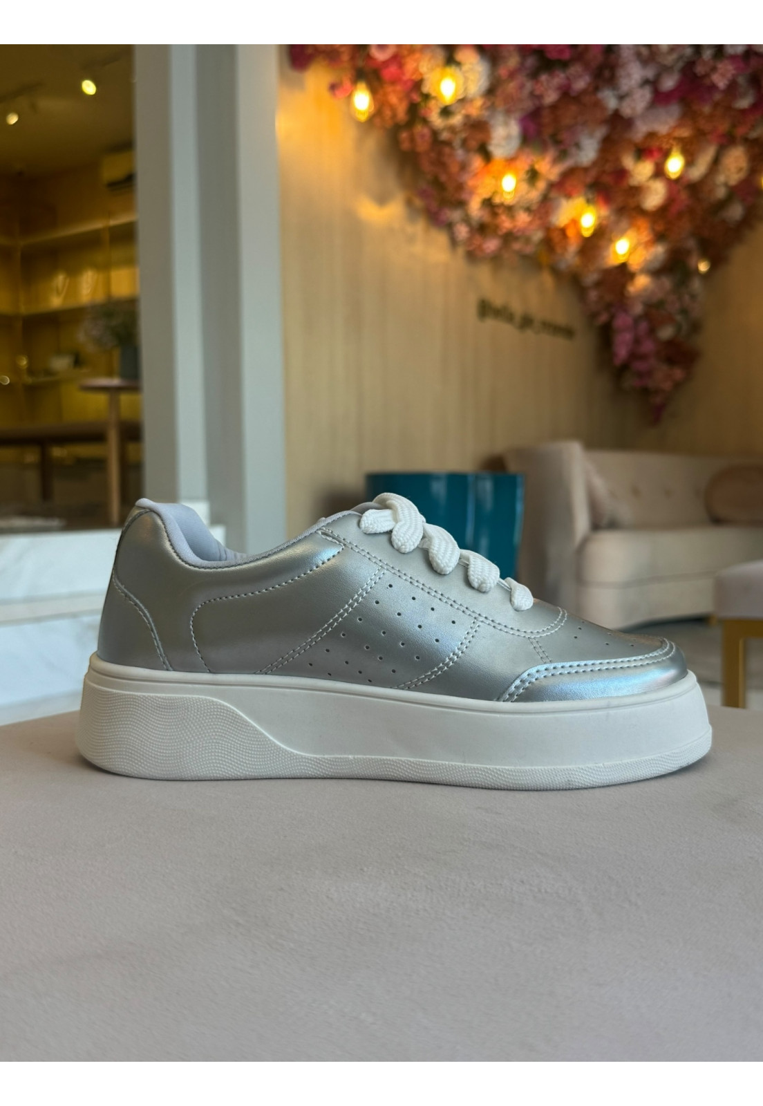 Descubra o brilho deslumbrante do Tênis Flatform Prata Metalizado Bella Gio Rezende! Este calçado vai elevar o seu estilo a um nível completamente novo, oferecendo um toque de alegria prateada que vai fazer você se destacar em qualquer ocasião.