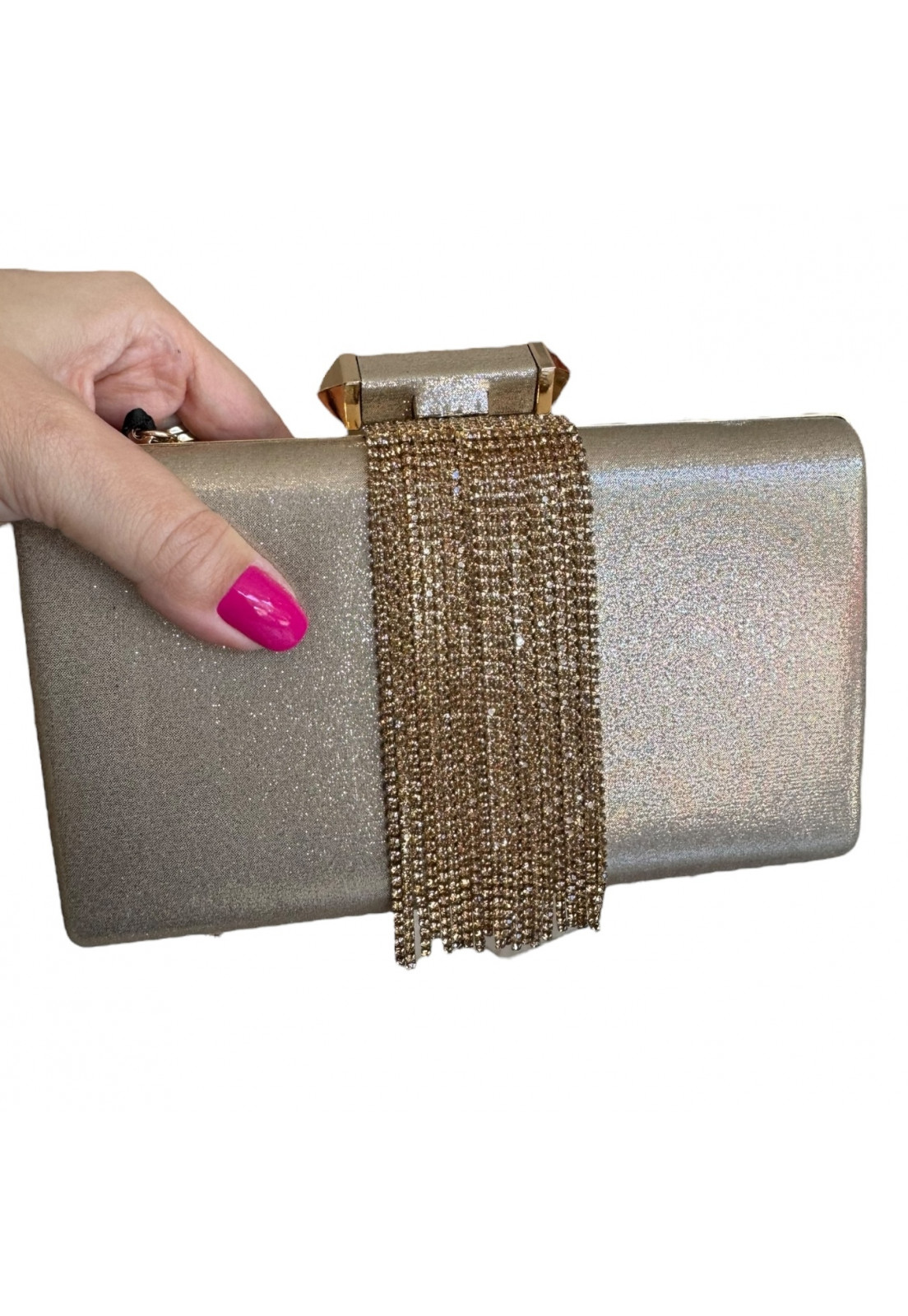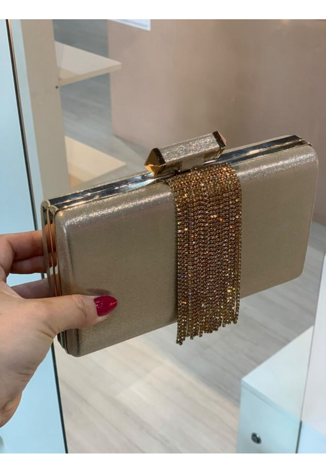 • Modelo: Clutch retangular Dourada Strass Ouro