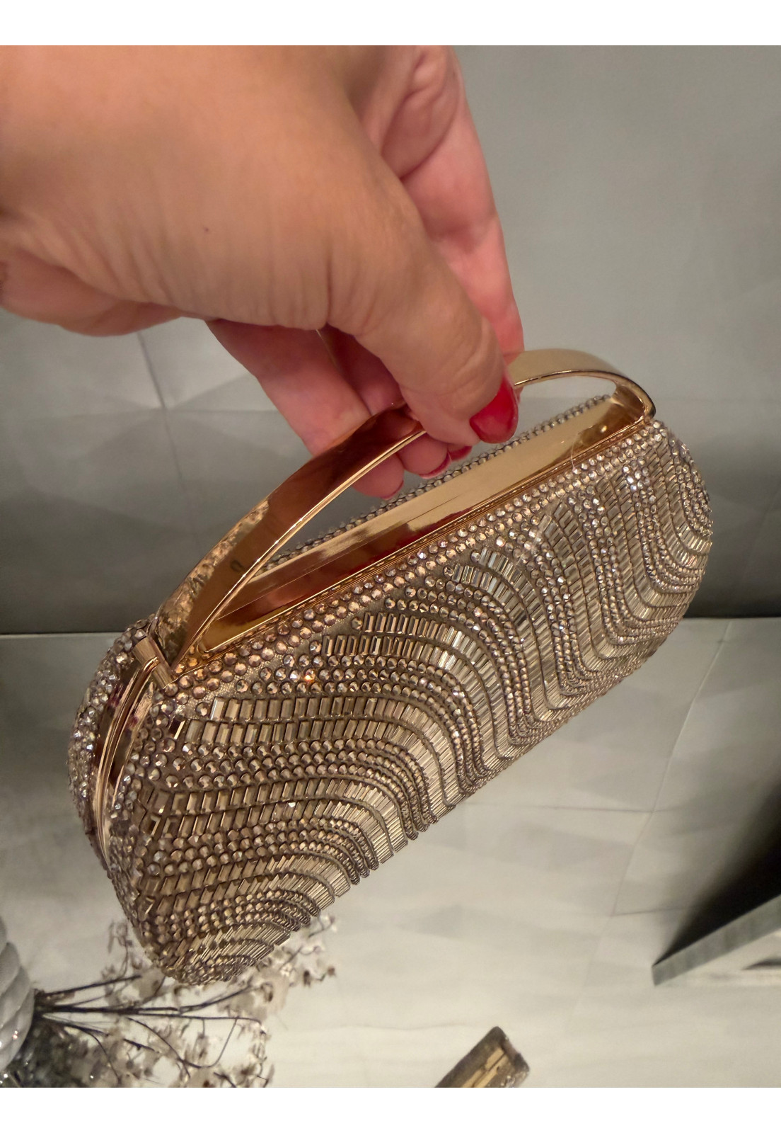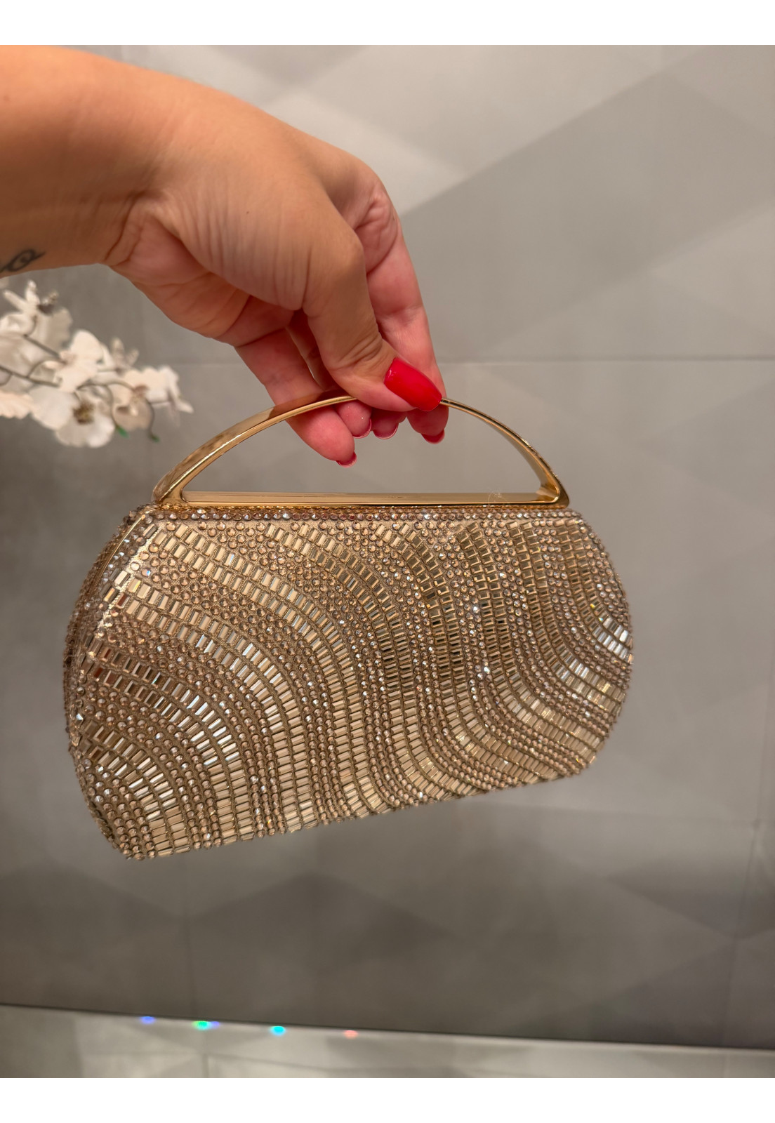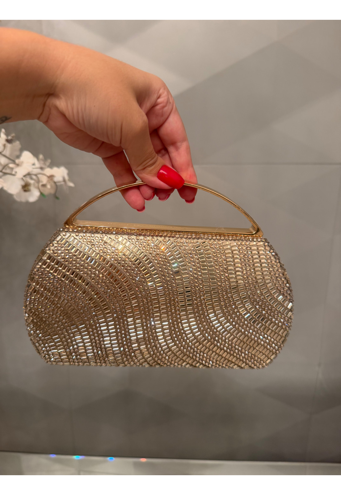 Clutch Dourada Crystal Glow – Brilho que Encanta Uma peça que é puro destaque. A Clutch Crystal Glow é inteiramente revestida com aplicações em pedrarias e cristais delicados, formando um design sofisticado e hipnotizante que reflete a luz a cada movimento. Seu acabamento em tom dourado traz elegância e requinte, enquanto a alça rígida metálica garante um toque moderno e imponente. Ideal para ocasiões especiais, ela transforma qualquer look em uma produção memorável. Revestida em cristais com brilho intenso Design luxuoso e exclusivo Alça metálica estruturada para mais sofisticação Perfeita para festas, eventos e noites especiais Para mulheres que não passam despercebidas e sabem que o brilho certo faz toda a diferença.