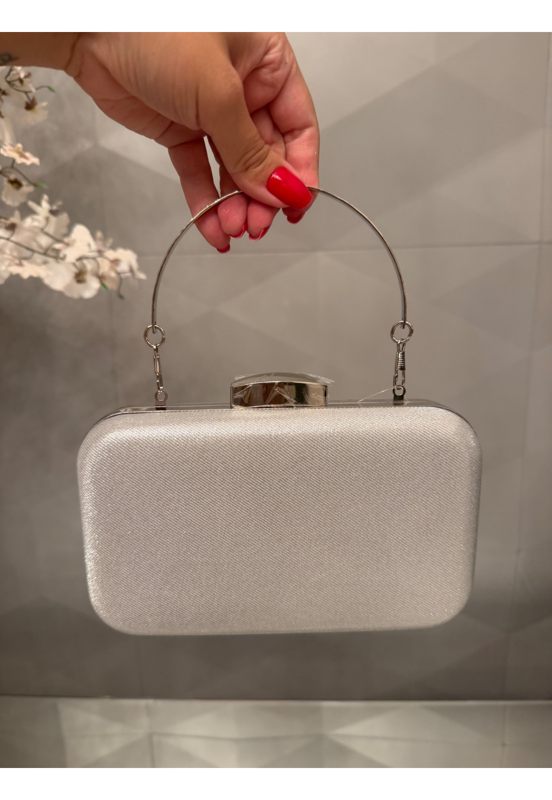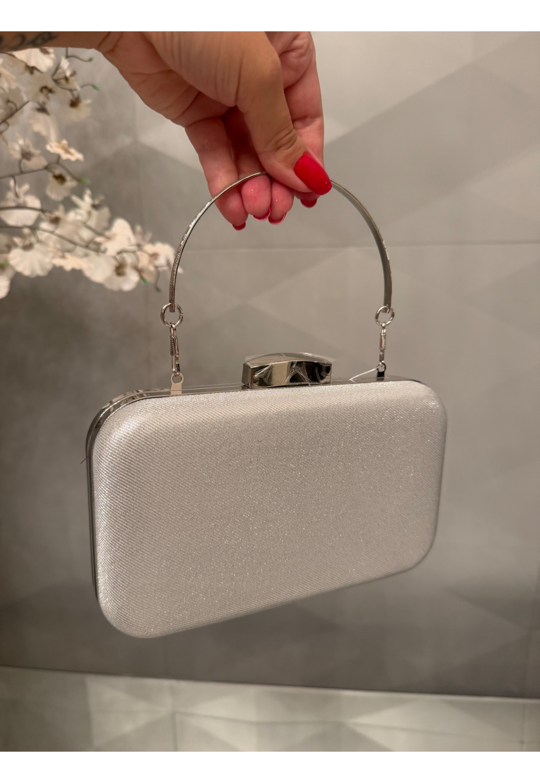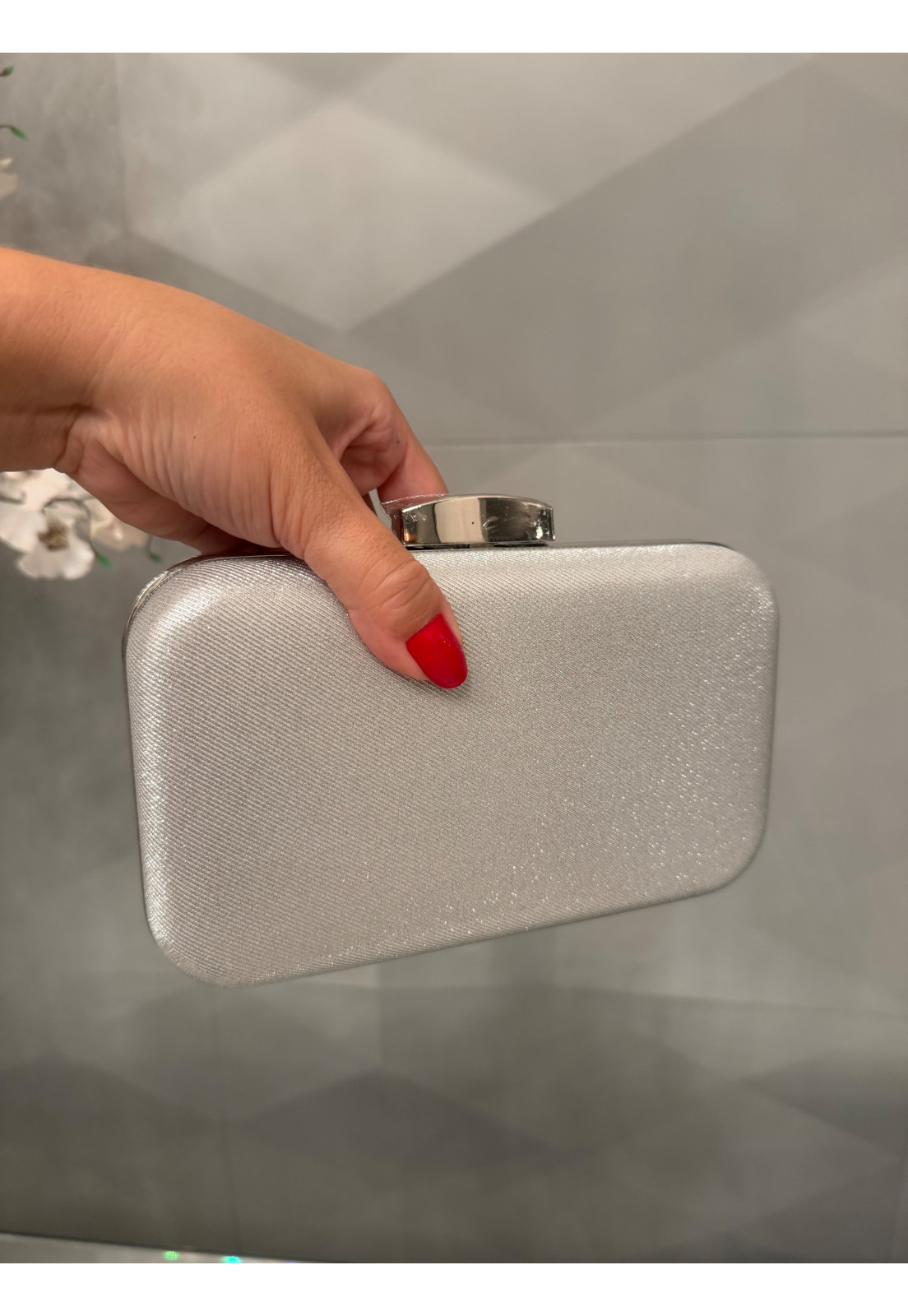 Clutch Prata Glamour – Elegância que Brilha A clutch perfeita para transformar qualquer produção em um verdadeiro destaque. Com acabamento sofisticado em textura metalizada prata, ela reflete a luz de forma sutil e elegante, trazendo um toque de glamour na medida certa. Seu design estruturado e compacto é ideal para ocasiões especiais, enquanto a alça metálica rígida adiciona modernidade e praticidade ao look. O fecho superior garante segurança e charme extra, completando a peça com um acabamento impecável. Perfeita para festas, casamentos e eventos noturnos Design elegante e atemporal Brilho sofisticado que valoriza qualquer produção Um acessório indispensável para mulheres que amam sofisticação e presença.