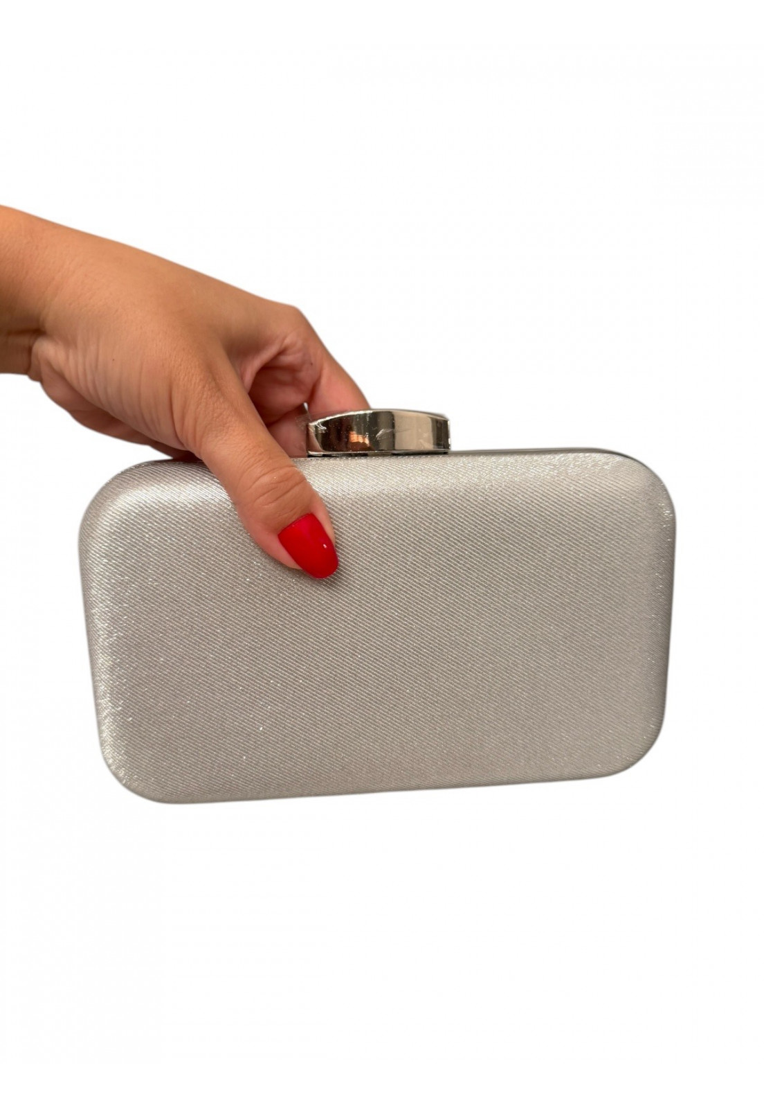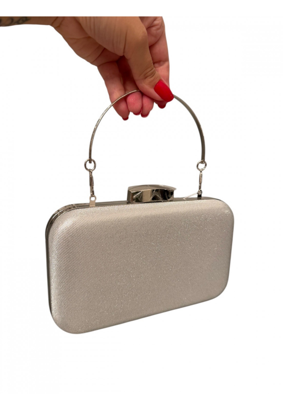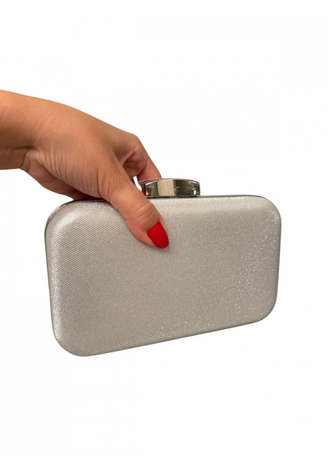 Clutch Prata Glamour – Elegância que Brilha A clutch perfeita para transformar qualquer produção em um verdadeiro destaque. Com acabamento sofisticado em textura metalizada prata, ela reflete a luz de forma sutil e elegante, trazendo um toque de glamour na medida certa. Seu design estruturado e compacto é ideal para ocasiões especiais, enquanto a alça metálica rígida adiciona modernidade e praticidade ao look. O fecho superior garante segurança e charme extra, completando a peça com um acabamento impecável. Perfeita para festas, casamentos e eventos noturnos Design elegante e atemporal Brilho sofisticado que valoriza qualquer produção Um acessório indispensável para mulheres que amam sofisticação e presença.