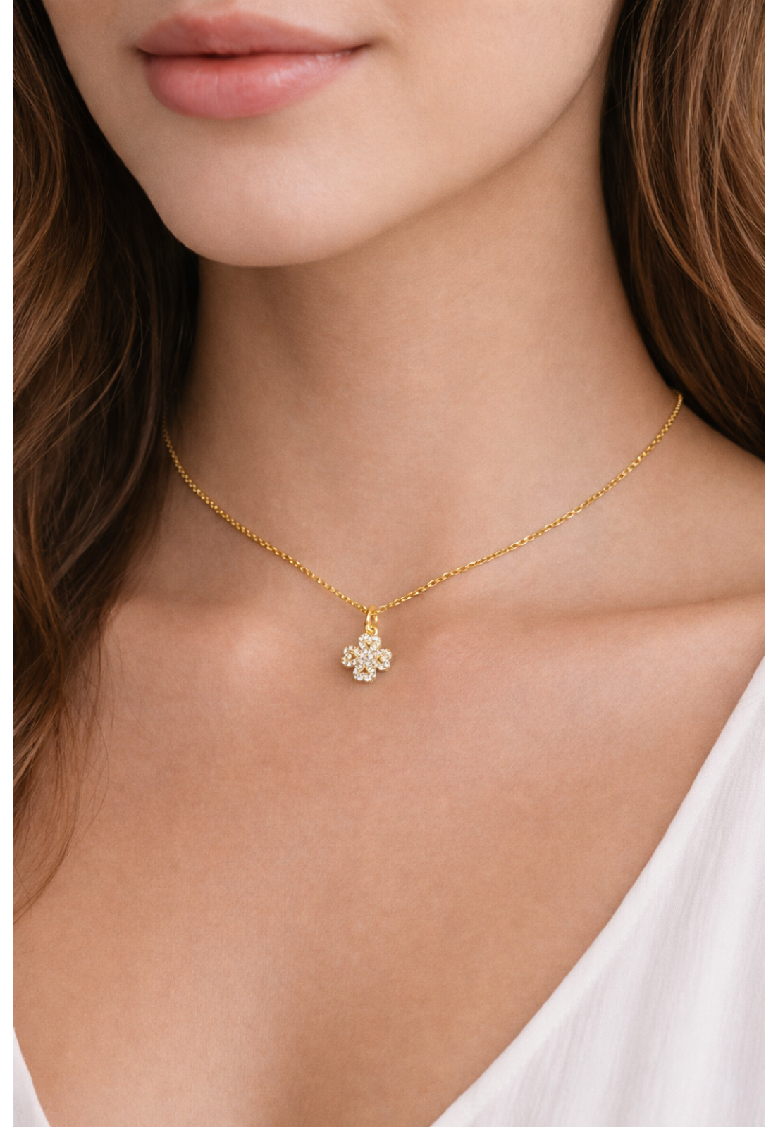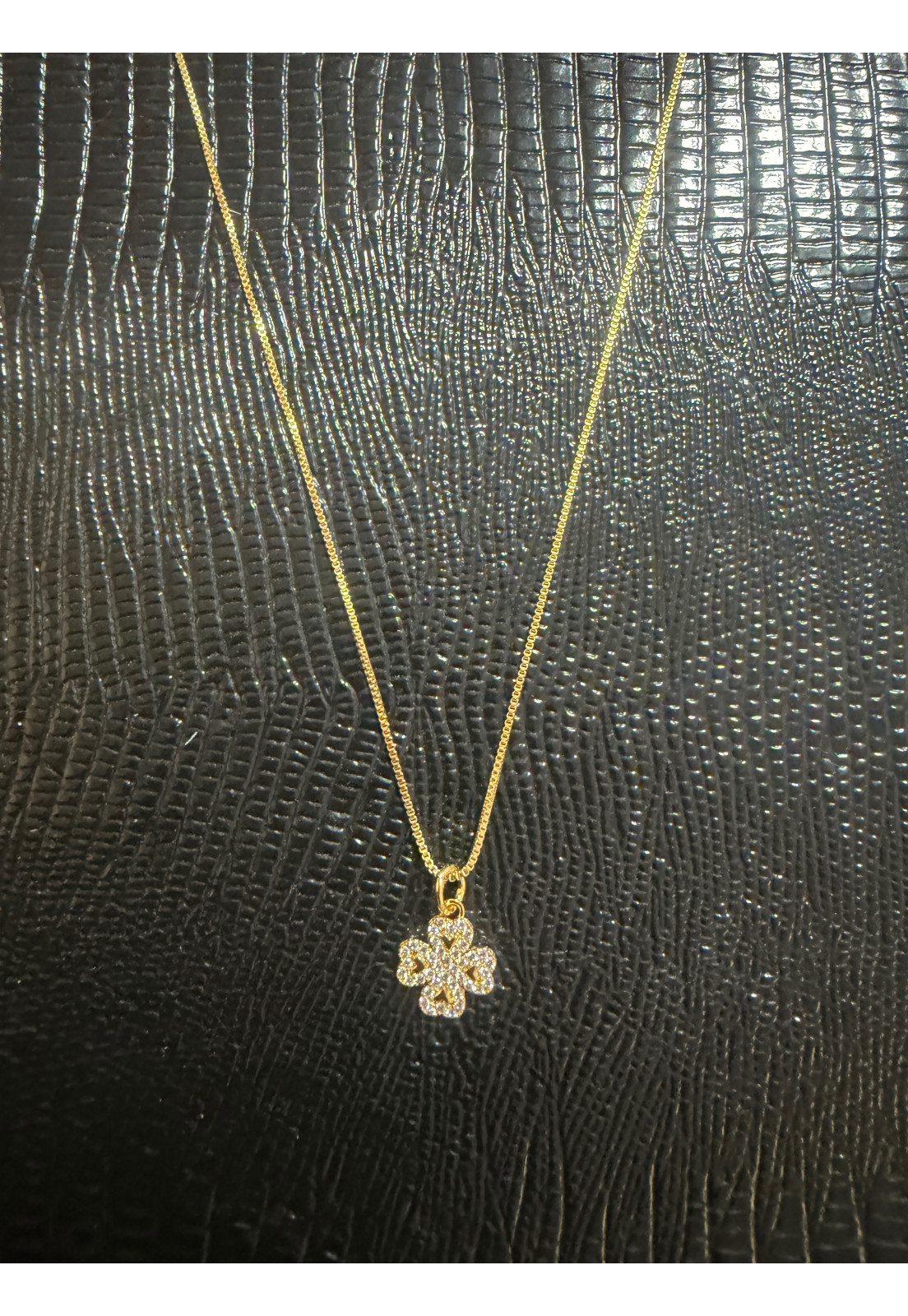 • Modelo: COLAR DOURADO TREVO CRISTAL