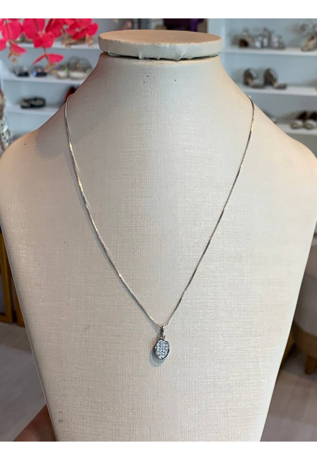 • Modelo: Colar OVAl Cravejado Com Microzirconias Semijoia Rodio Branco