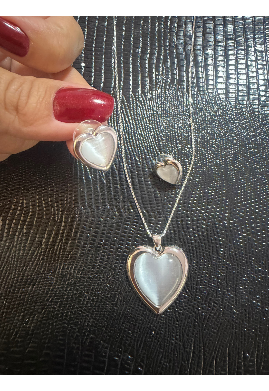 • Modelo: CONJUNTO COLAR E BRINCO PRATA CORAÇÃO COM PEDRA GRAFITE