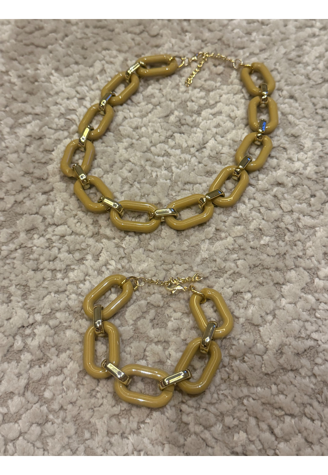 CONJUNTO COLAR E PULSEIRA CORRENTE MOSTARDA