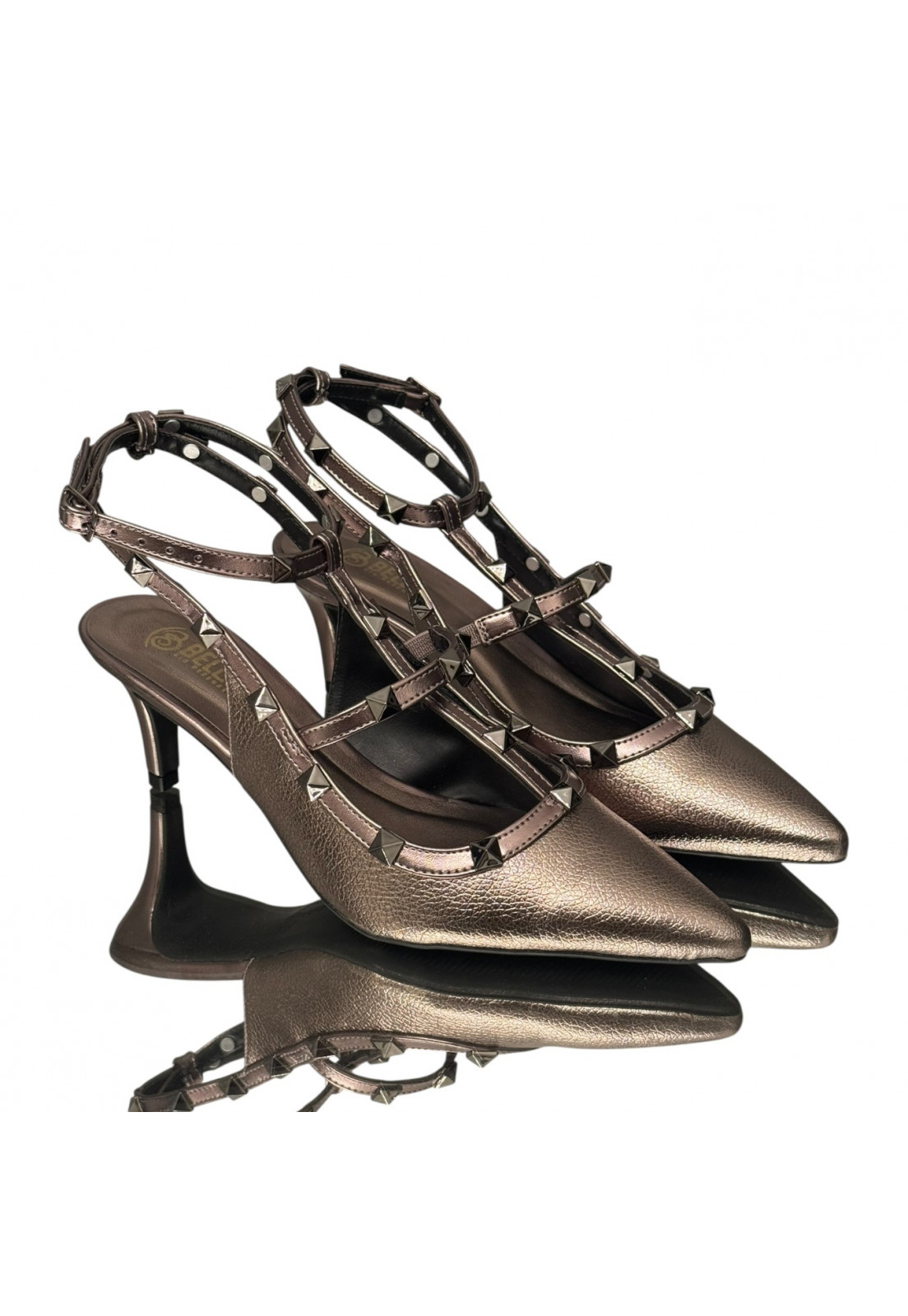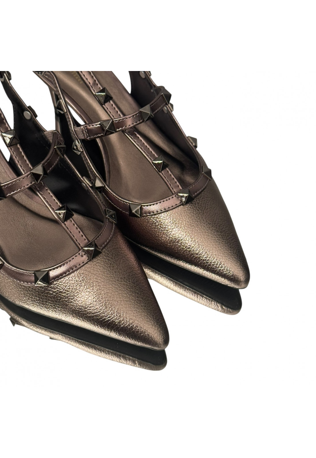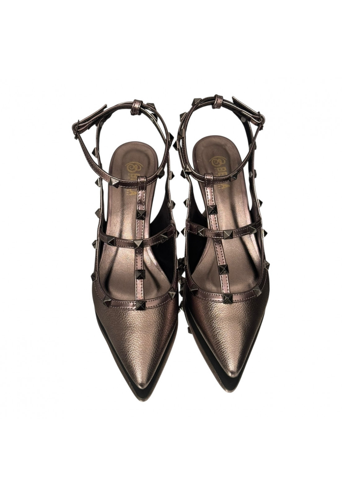 Fabricado com couro ecológico de alta qualidade, o Scarpin reflete nosso compromisso com a moda sustentável, mas também exibe um design único e distinto. Com um padrão Spike prata que lembra PODER e ELEGANCIA, este sapato é uma obra de arte em si.