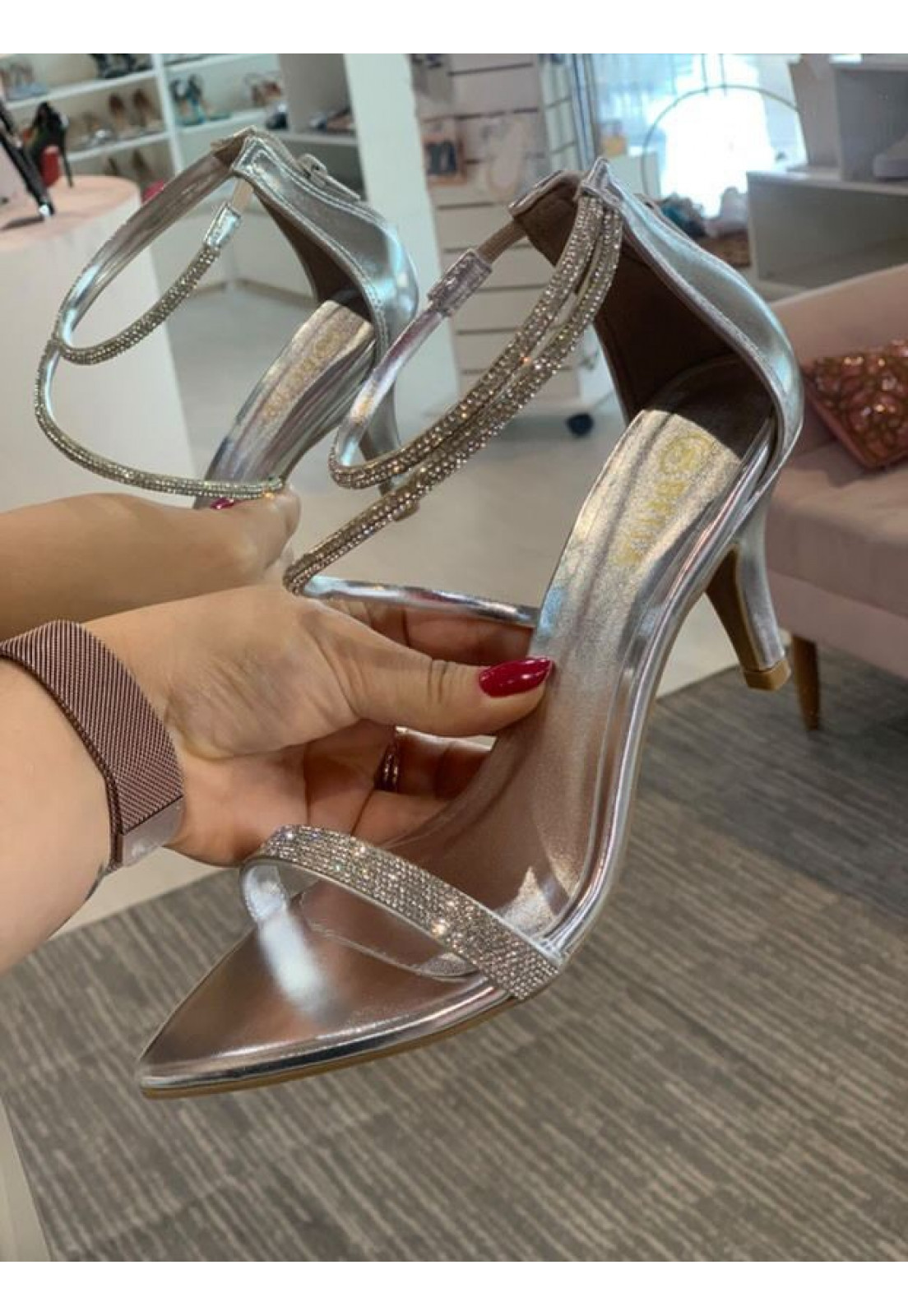 A Sandália Bico Folha Prata brilho Strass Cristals está um escândalo!!!