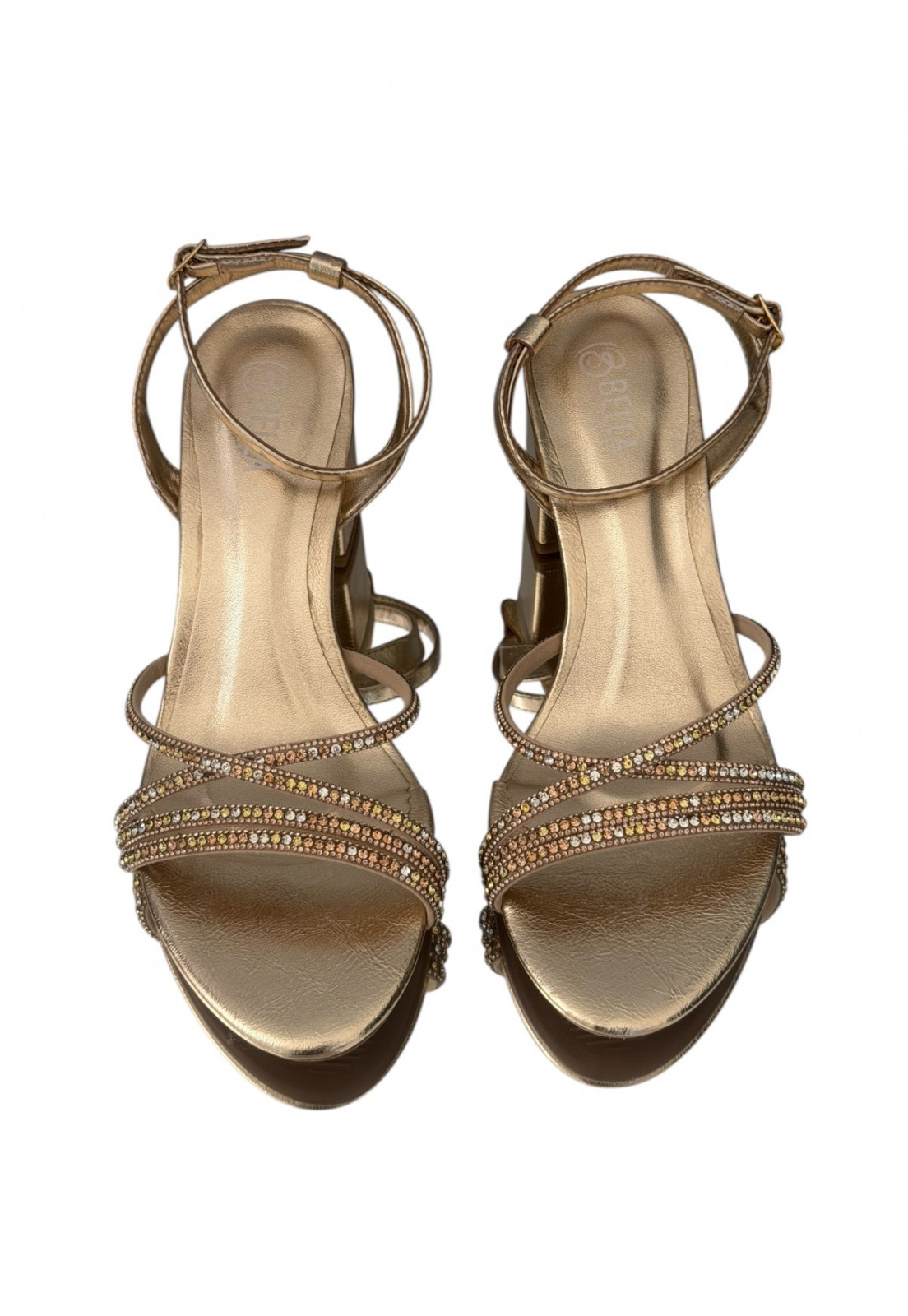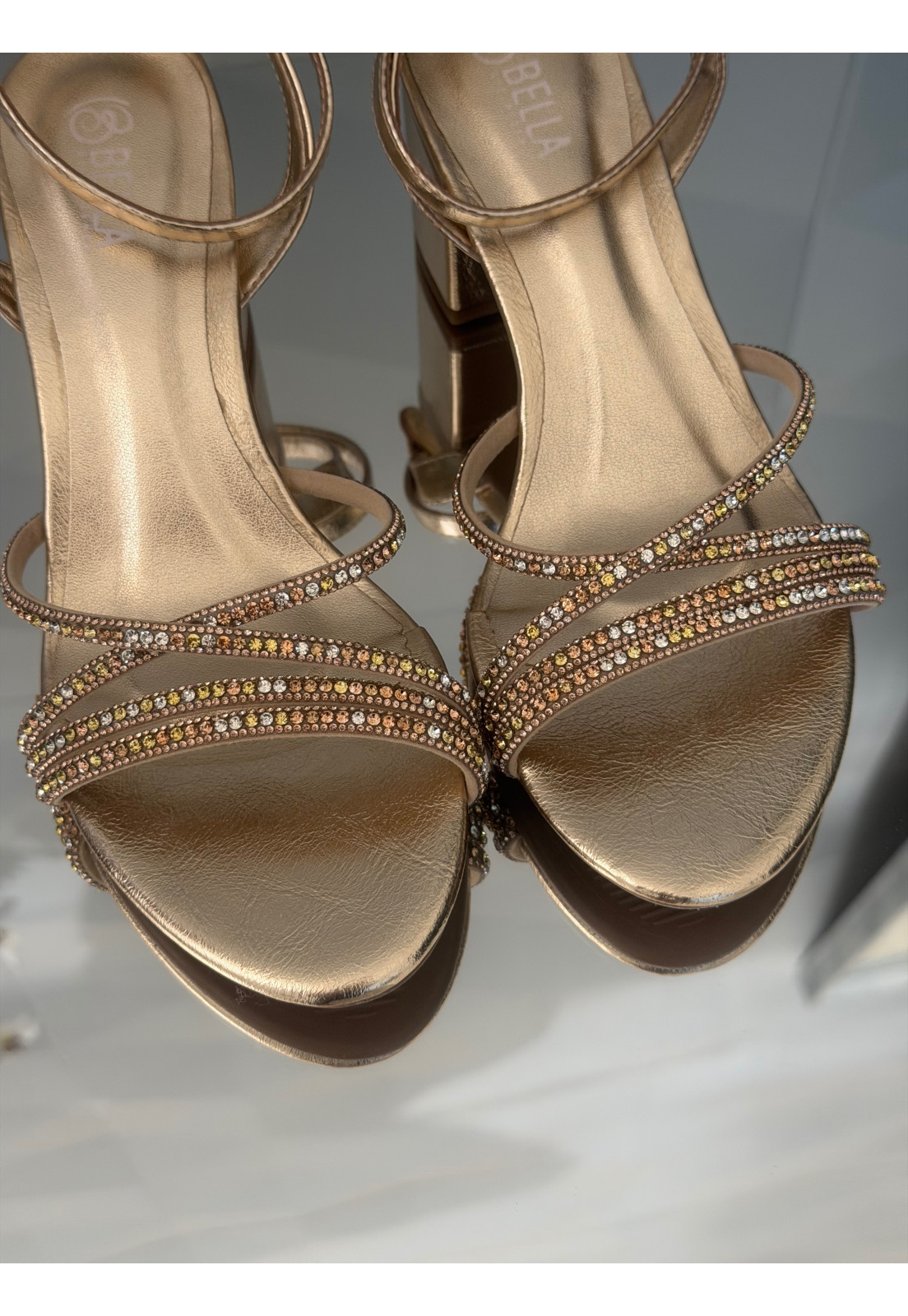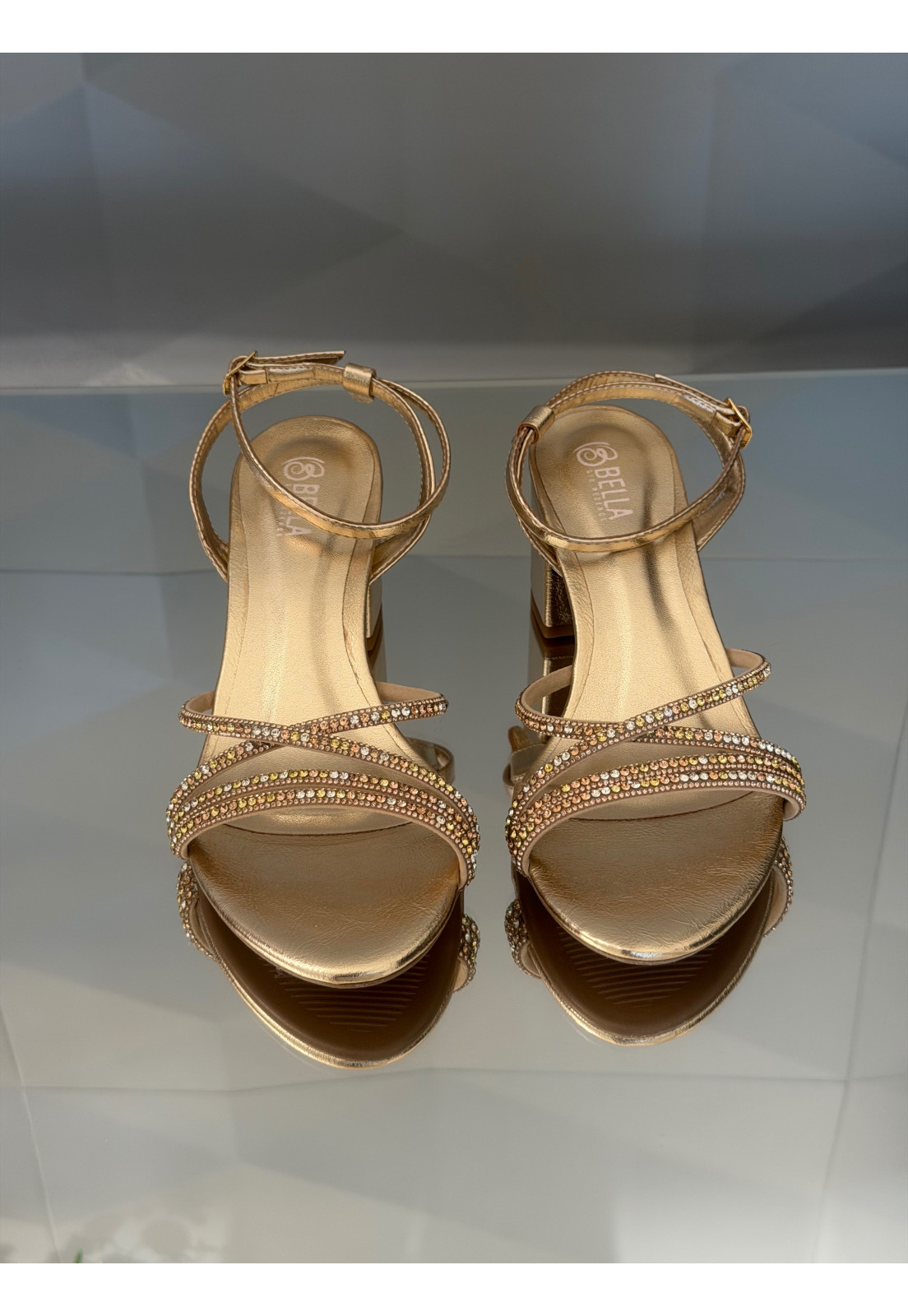 O design apresenta tiras delicadas adornadas com aplicações de strass colors, que capturam a luz de forma sutil e elegante. O salto bloco estruturado proporciona estabilidade e conforto absoluto, permitindo que você transite com segurança do dia à noite. O fechamento em fivela no tornozelo complementa o modelo com ajuste preciso e acabamento impecável.