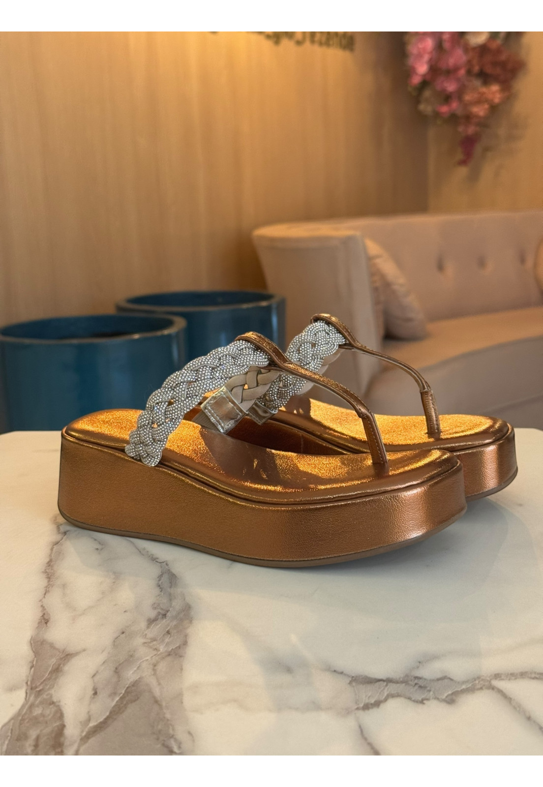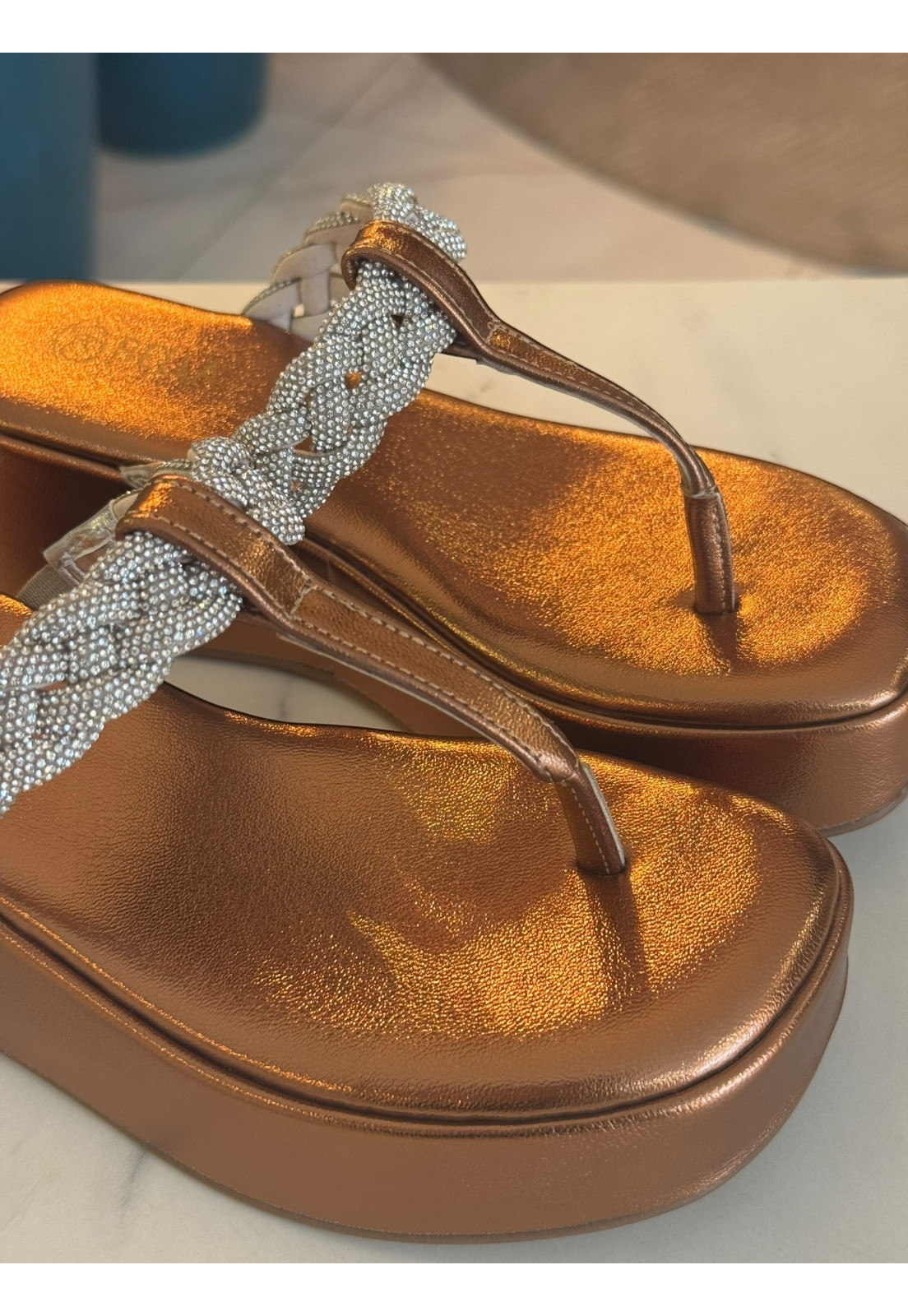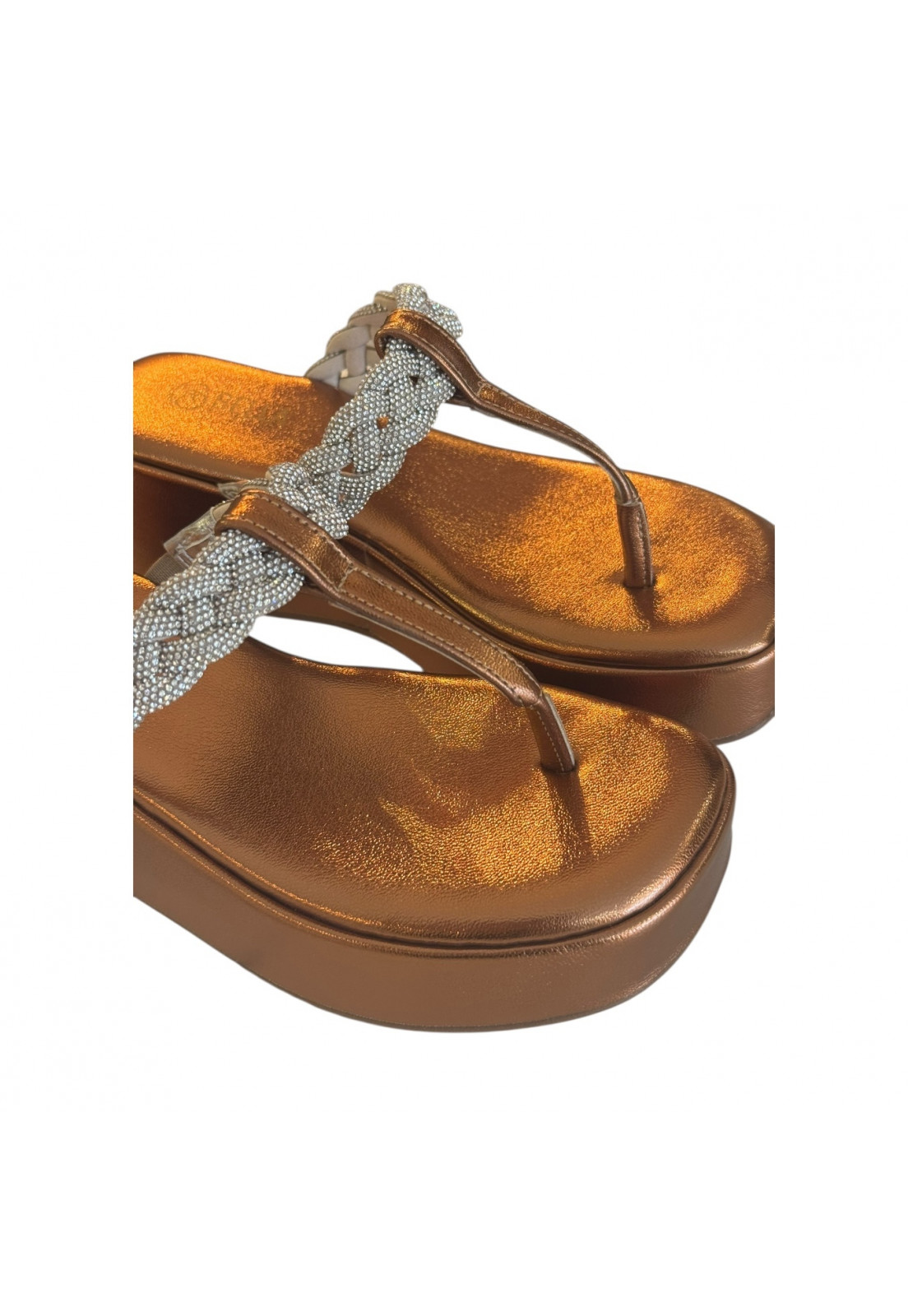 - Cabedal e palmilha desenvolvido em sintético de alta qualidade Ipanema Bronze com aplique Strass Premium
