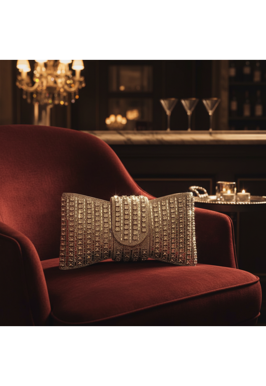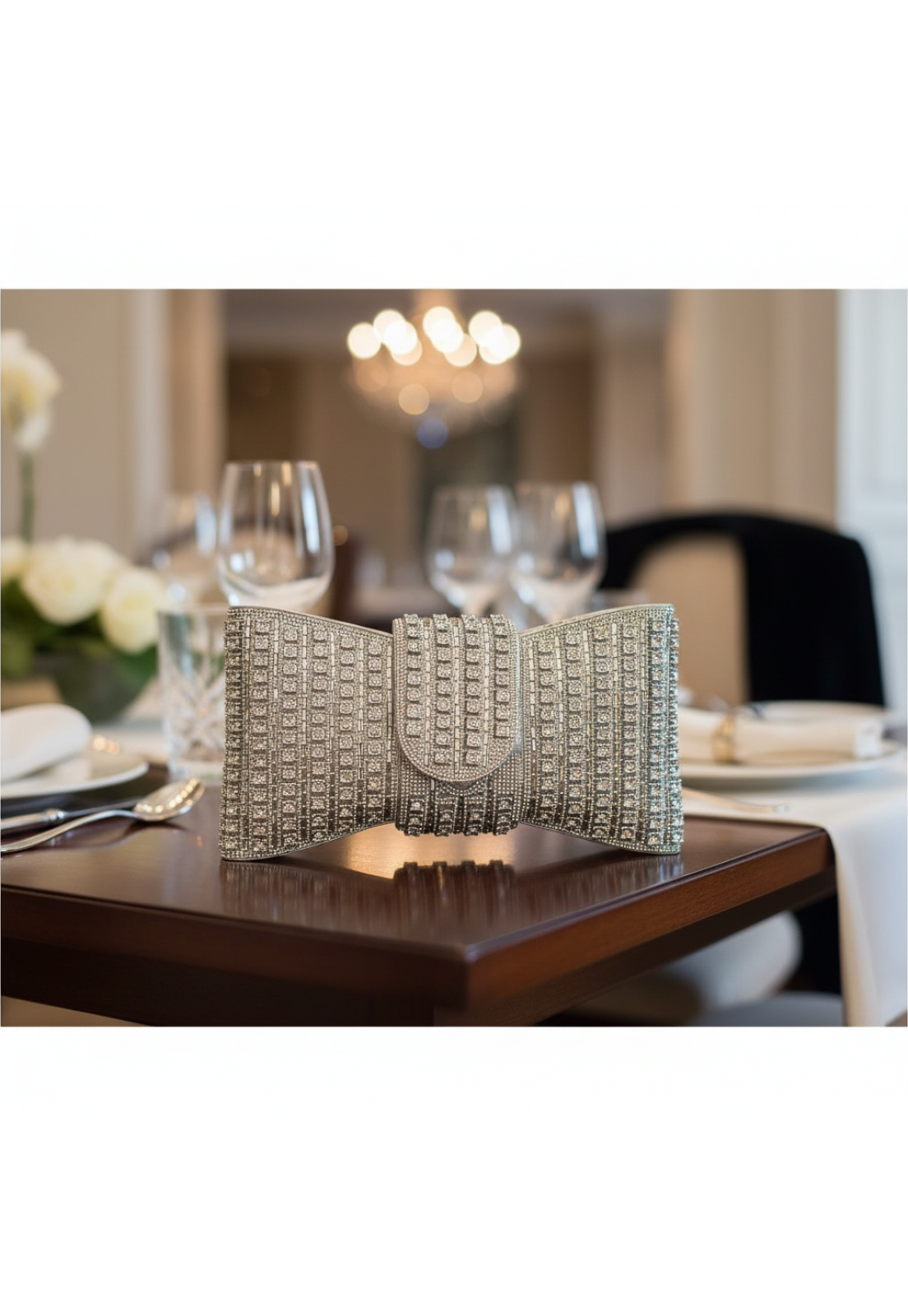 Retangular em formato de laço, Toda cravejada e mega brilhante, chiquérrima seu fecho com ziper internamente e super delicado!