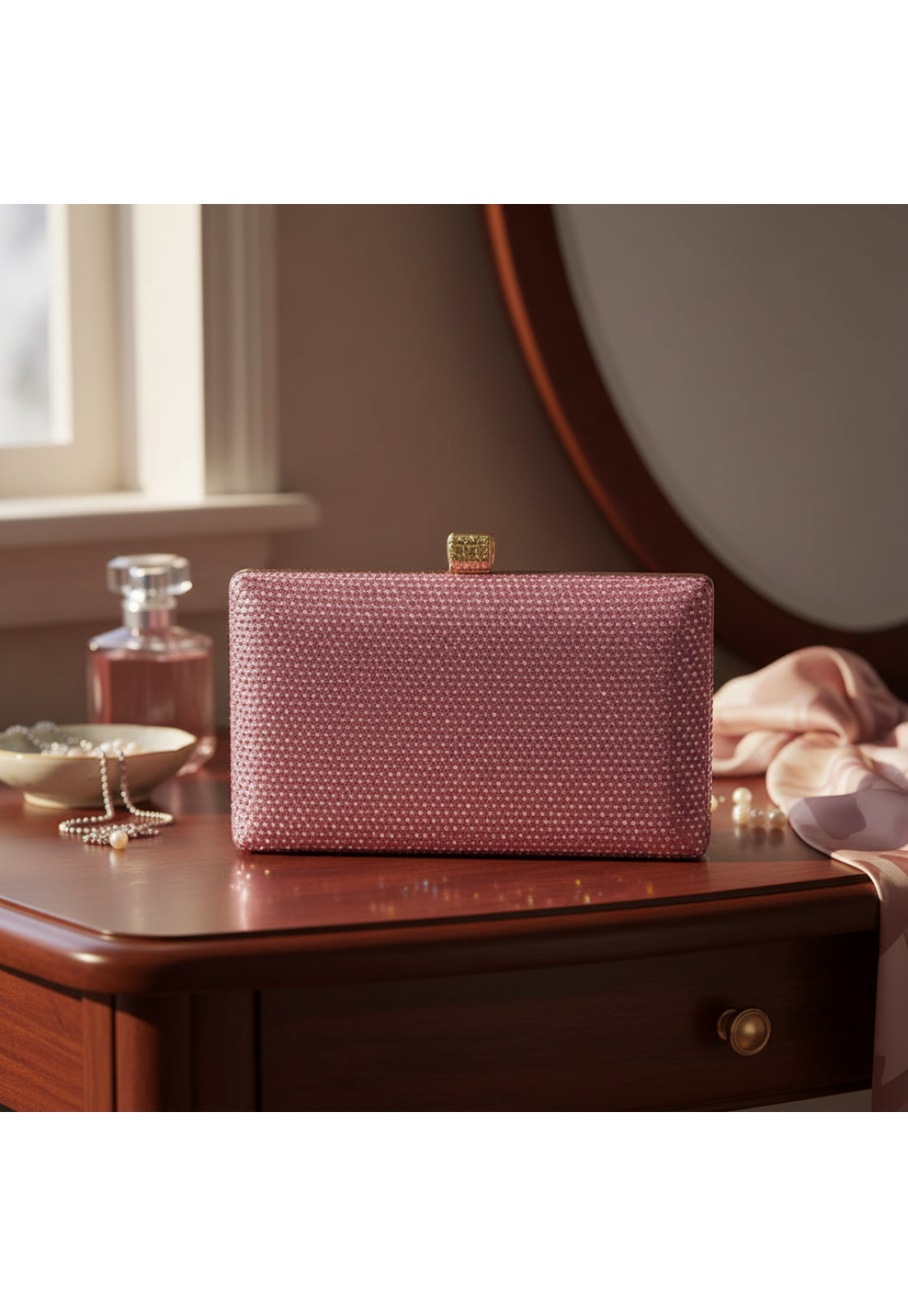 A bolsa Clutch Rosa Luxo Retangular Bella Gio Rezende é revestida em brilho da mesma cor da bolsa e é o acessório perfeito para mulheres que querem brilhar em qualquer ocasião.
