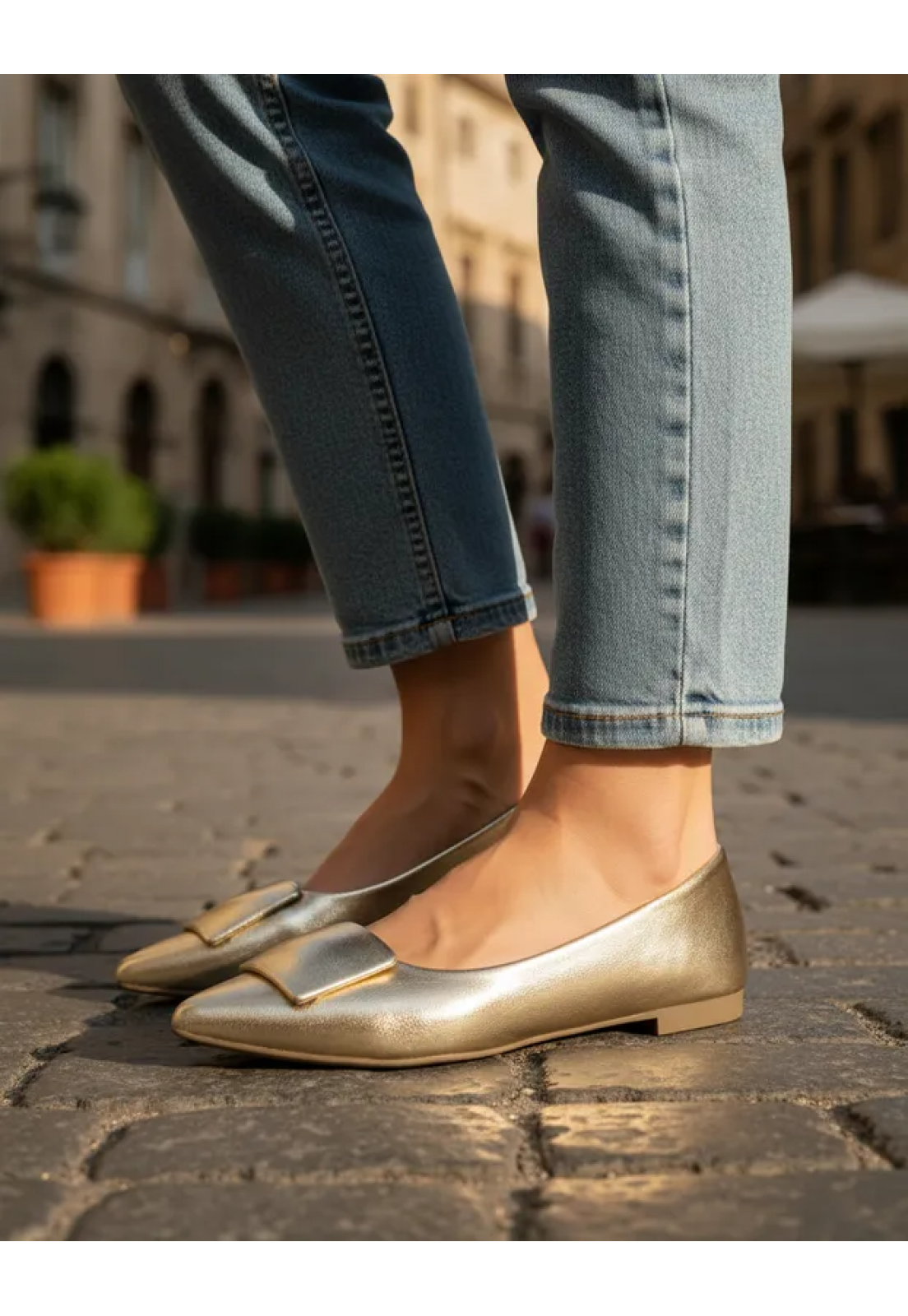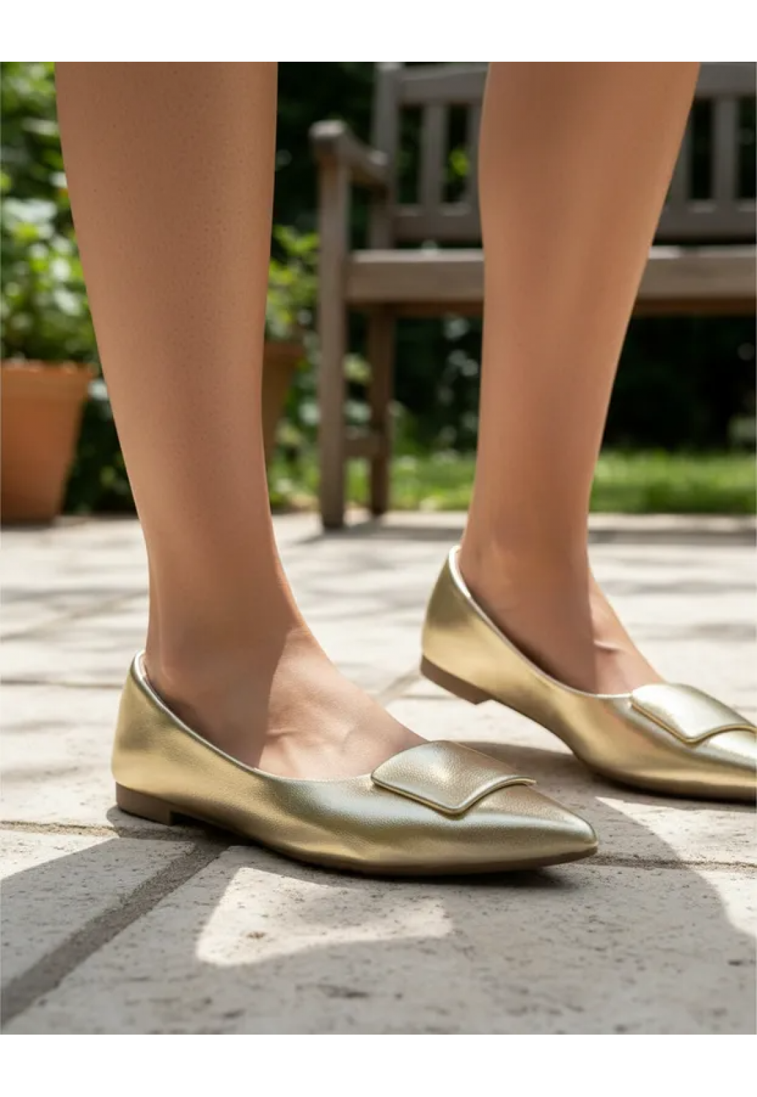 Descrição: Sapatilha dourada metalizada.