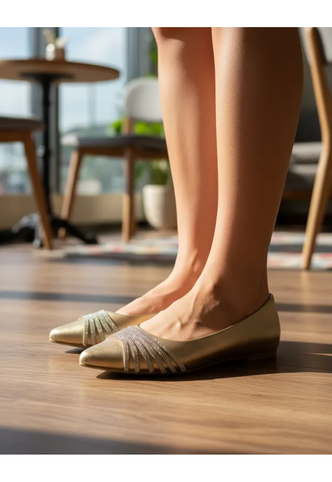 O modelo tem salto rasteiro, base emborrachada e bico fino.